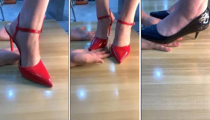 两双高跟鞋crush手掌