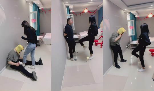 莫莉 无情暴力踢裆