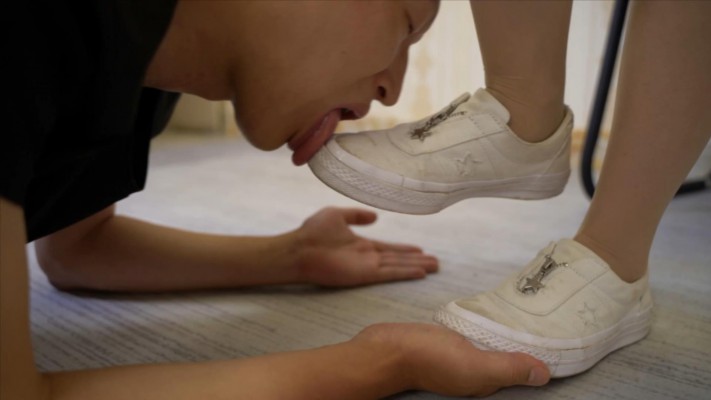 【00后小彤】白裙脏匡威玩18岁小M,踩踏舔鞋底