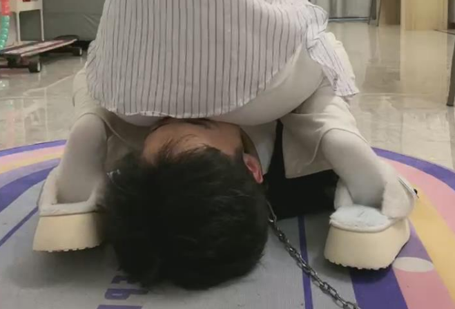 【伊晨】包房玩狗舔脏靴底狗喂食裸足互舔