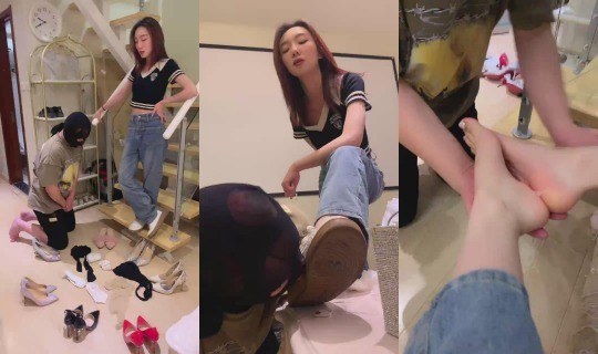 不知名美女 超会舔脚的狗