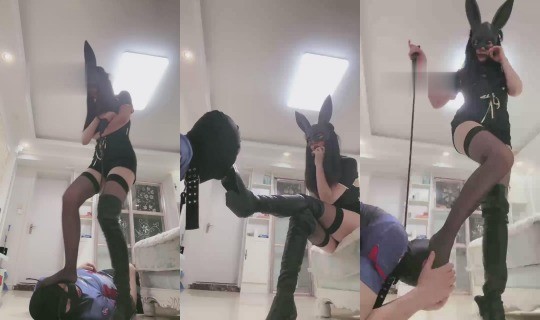 月影儿 兔女郎 黑丝高跟长靴踩狗