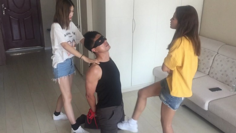 〖碎蛋娇娃〗美丽姐妹花巧妙利用智障男同学练习踢裆
