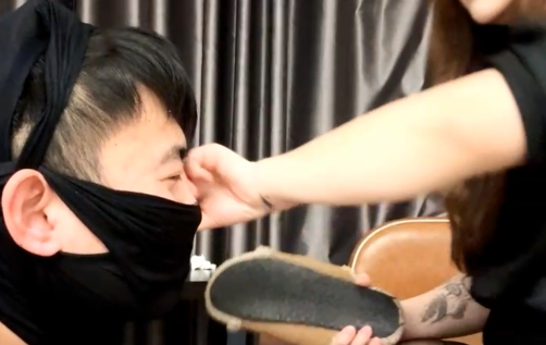 情侣奴被高贵辣妹当清理鞋底汗脚工具使用