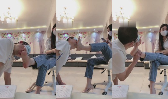 绝美熙雯踩姐全体重踩踏小鲜肉-金属尖细高跟鞋