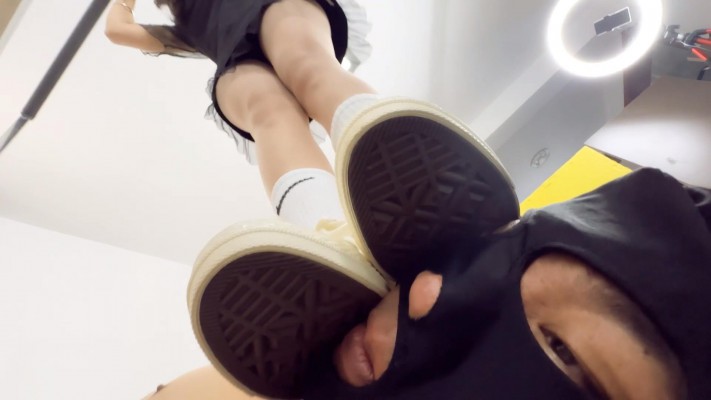 凌音S帆布鞋酸臭白棉袜肉丝脚踩脸闻脚虐腹
