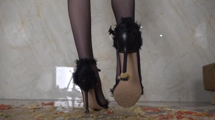 【南国原创】雪儿女神黑丝高跟鞋踩踏食物