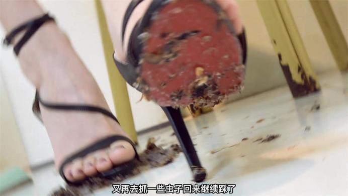 晓G裸足高跟凉鞋放松解压蟋蟀 碾死随意的踩杀消遣