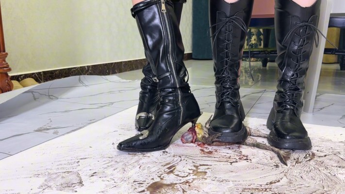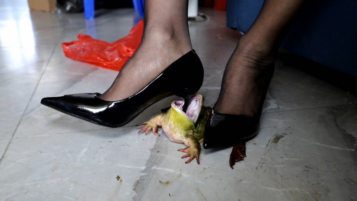 高跟鞋踩踏下贱的蜗牛,一脚一脚踩死踩烂,鞋底展示下贱蜗牛尸体,语言羞辱辱骂。