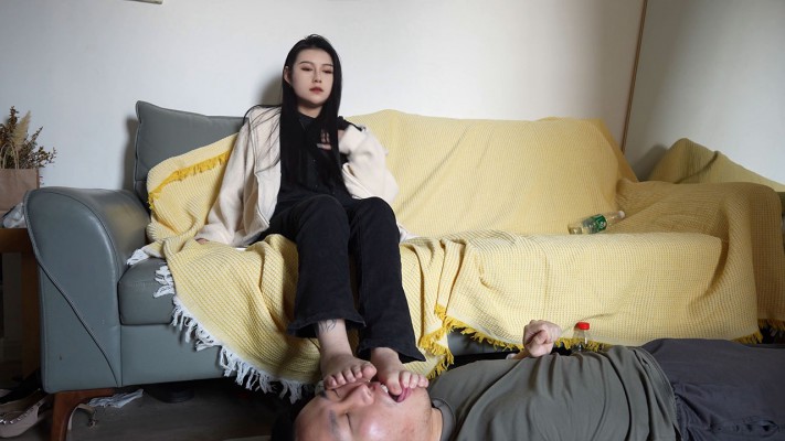 『红颜榜』汗脚微微女王逛街后享受脚奴清理脚底