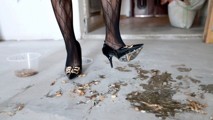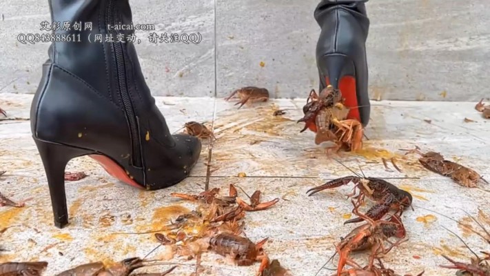 婧児黑丝高跟凉鞋 鞋跟扎踩碎蟋蟀